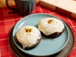 自家製チョコカスター・ガナッシュを国産チョコ生地に包餡しアーモンドクリームを塗り