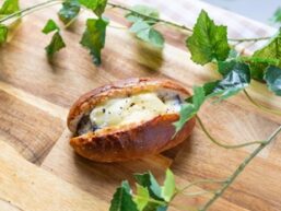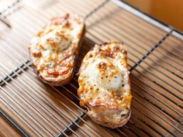 フランスパンにホワイトソース・タマサラ・ベーコン・ブロッコリー最後にチーズを載せ焼き上げました!